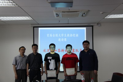 5月8日上午,首届全国大学生数据挖掘邀请赛 复赛答辩环节在中国科学技术大学东校区管理科研楼1018室举行,从参加初赛的300多支队伍中脱颖而出,来自中国科学技术大学、北京大学、浙江大学、复旦大学等全国多所著名高校和中国科学院自动化所的16支参赛队伍参加了本次答辩。最终,由我校计算机学院语义计算与数据挖掘实验室负责人陈恩红教授指导,以宝腾飞、向彪,刘淇三位博士生为主力的RecSys1队获得了研究生组第一名的优异成绩,同时,该实验室的徐童、曽广翔等研究生同学所组成的数据掘金队,以及解浚源等同学组成的LightSpeed队分获研究生组和本科生组第三名。此外,来自我校少年班和管理学院的同学还获得了本科生组第六、七名。至此,历时五周的首届全国大学生数据挖掘邀请赛正式落下帷幕。我校以一项一等奖,两项三等奖,两项入围奖的成绩,名列各参赛高校之首。