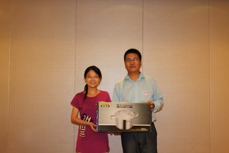 苏州校友晚宴大奖为锅奖(不锈钢煲汤锅一口),取新中国第一奖学金、中国科大本科生最高荣誉奖学金“郭奖”(郭沫若奖学金)之意。主持人调查发现,现场王蕾(0103,苏州大学)是中国科大郭沫若奖学金获得者,她被邀请作为抽奖嘉宾。朱钰(0407)幸运获得价值516元的“锅奖”。王蕾等向“锅奖”获得者朱钰颁奖。