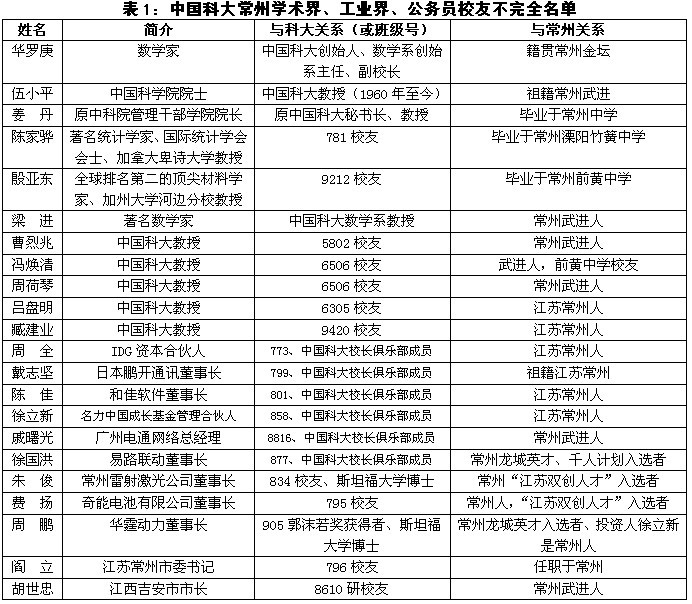 常州与中国科大渊源深厚,您可能并不知道常州人创办了科大!——中国科大创办人之一华罗庚来自常州金坛,近10位科大教授是常州人,中国科大常州籍校友涌现了众多知名科学家。常州与中国科大合作紧密——2011年2月27日,中国科学技术大学常州研究生培养基地在常州科教城签约揭牌。表1列举了部分中国科大常州籍杰出校友。
