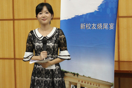 烧尾宴女主持最终花落合肥赛区——中国科大生命学院在读研究生赵琳(0608,0908硕)脱颖而出,她被紧急从合肥空运进京。9月22日18:20,男主持宣布“全场安静,奏乐”后,数百位校友以筷子敲击玻璃杯,此时《非诚勿扰》音乐大作,赵琳从北语会议中心二楼婷婷袅袅,轻移莲步至舞台,让这场烧尾宴开场伊始即充满欢乐的山寨气氛。