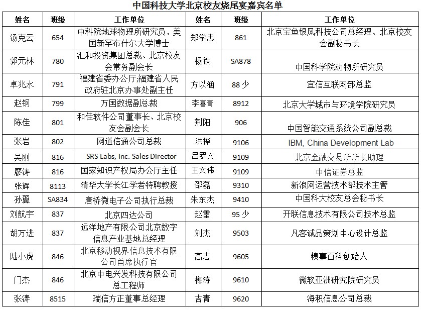 出席北京新校友烧尾宴的部分资深校友名单。