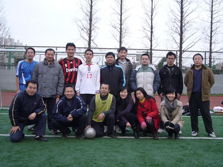 中国科大上海足球队合影,后排自左向右:贾梦雷(989)、牟志坚(796)、邓刚(8411)、吕宇涛(896)、赵晓武(97少)、陈华(868)、李晓伟(9810)、余海兵(SA08225)、尹宏(866) 后排自左向右:李凯(994)、陆超(88少)、江勇(86少)、罗菲菲(9811)、姜燕(0211)、王丽丽(SA0719)