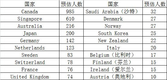 表1. 中国科大全球校友分布(除中美前20位)(需手动调整)