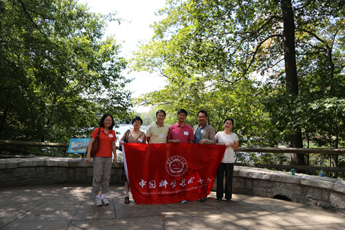 先行抵达的部分校友们在科大校旗下合影