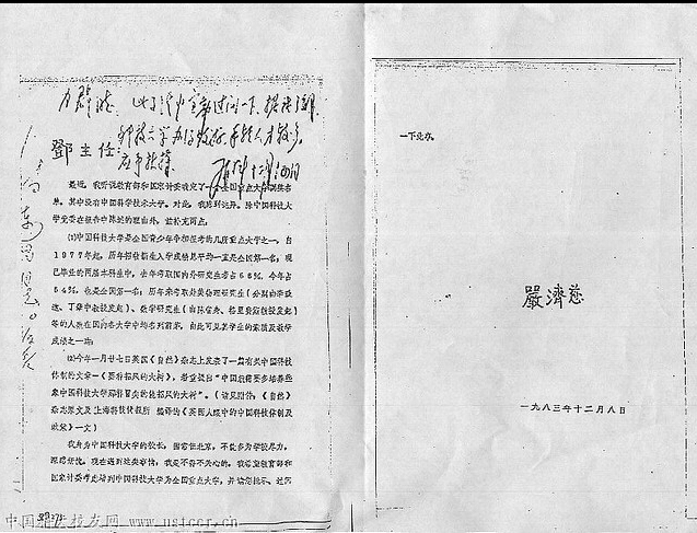 >——1984年1月25日:△国务院副总理方毅致函万里、姚依林副总理:“小平同志在八三年十二月十二日、二十八日两次当面对我说,要把科技大学列入重点,我已当面告何东昌同志。万里同志也有类似批文。严老也上报中央提出要求。此事恐要考虑。妥否,请指示。”