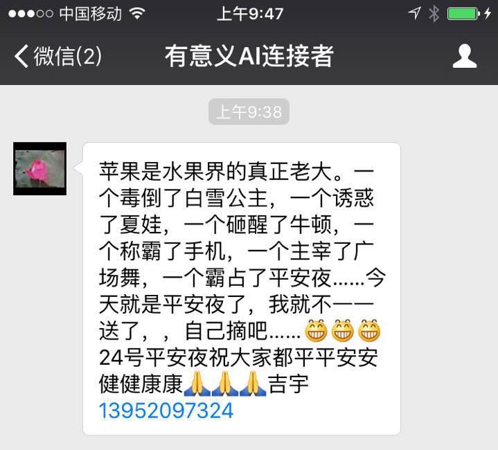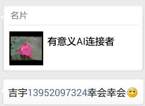 该人士微信自称“吉宇”,手机13952097324。微信名片为“有意义AI连接者”。通过其微信判断,此人为职业骗会者,其朋友圈多次炫耀与徐小平、李开复等人的合影。
