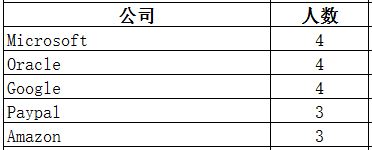 在这类公司中,根据LinkedIn的数据,共有38名校友就职,实际人数应较之更多。其中校友分布集中于Microsoft(4位)、Oracle(4位)、Google(4位)、Paypal(3位)、Amazon(3位)等。就职于这类公司的校友主要从事的工作类型为engineering(24位)、research(4位)、program and project management(3位)等。