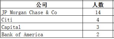 目前,具有化学学科背景的校友在金融类公司中就业的人数为21人,主要分布在JPMorgan Chase & Co.(8位)、Citi(4位)、J.P.Morgan(3位)、Capital One(3位)。这些校友主要从事的工作类型为Finance(5位)、Information Technology(5位)、Business Development(3位)等。