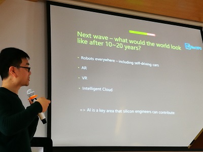 冯歆鹏校友(9706,NextVPU/肇观电子 CEO)分享了AI芯片和系统创业的体会。冯歆鹏曾任 AMD 研发总监,曾带领全球百人工程师团队,设计过包括为Xbox One和Play Station 4的CPU在内的50多款数千万量级的芯片。2016年创立NextVPU,努力将视觉赋予给所有的机器人和各类智能设备,开启人工智能的新时代。冯歆鹏认为硬件及芯片至关重要,AI时代IC人大有作为。NextVPU研发的视障人士出行辅助眼镜“天使眼”( AngelEye),已获得广泛关注。