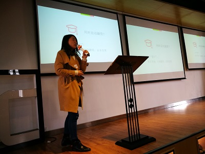 丰韫喆校友(0414,以太资本投资经理)围绕创业企业融资有关问题为校友们进行扫盲。丰韫喆是现场仅有几位女同学,从斯坦福博士毕业,后转行做投资顾问,专注高科技行业创业企业的天使-B轮融资服务,近一年成功帮助多个高科技创业企业(包括校友企业)完成融资。