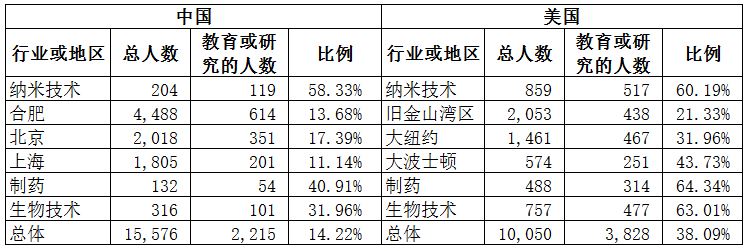 LinkedIn数据显示,从事研究(Research)或教育(Education)的纳米技术行业校友比例在美国和中国分别是60.19%和58.33%,若不分行业,从事研究或教育的校友在美国和中国则分别是38.09%和14.22%。