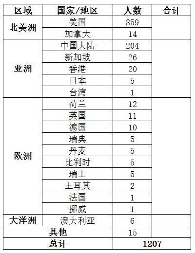 首先,由于LinkedIn数据的特点,本文对纳米技术行业校友的分析,以“nanotechnology”为关键词进行搜索,并对搜索结果进行统计分析。部分校友在从事纳米技术相关行业,但在LinkedIn上未用“nanotechnology”这一词语进行登记。此点提请校友注意。