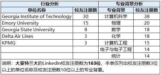 Atlanta(亚特兰大)是美国南方地区第一大都市,第一教育,医疗,金融中心以及交通枢纽(亚特兰大机场是世界客流最多的机场)。Atlanta的著名高校为乔治亚理工学院(Georgia Institute of Technology)、埃默里大学 (Emory University)、与佐治亚州立大学 (Georgia State University),这也是在亚特兰大校友最为集中的三个单位。
