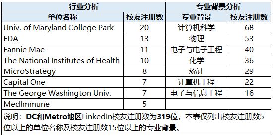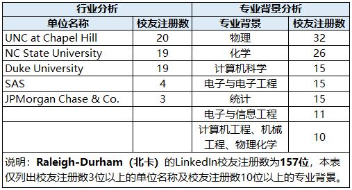 我们列出LinkedIn上校友注册数超过100位的城市的校友集中企业/单位及校友的专业背景情况。