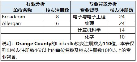 Orange County, California Area包括Anaheim、Santa Ana、Irvine、Huntington Beach等。校友在大洛杉矶地区主要集中在软件、信息技术、互联网公司,如Microsoft、Amazon、Google等。超过60%的校友拥有计算机科学/工程、信息通信等专业背景。
