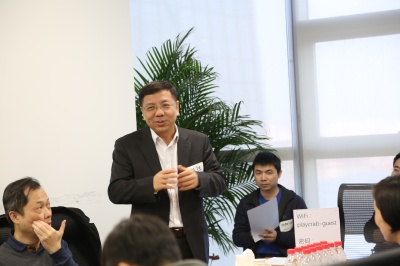 叶凯热烈欢迎校友的参访,并介绍了中国游戏行业的发展态势与玩蟹科技的创业历程。他的介绍引起了校友们的浓厚兴趣。他的深入分享与校友提问交流持续了一个半小时。玩蟹科技联合创始人欧阳刘彬(0211)出席。北京校友会会长陈佳(801)与新创基金会理事长石兵(9913)也致辞欢迎。