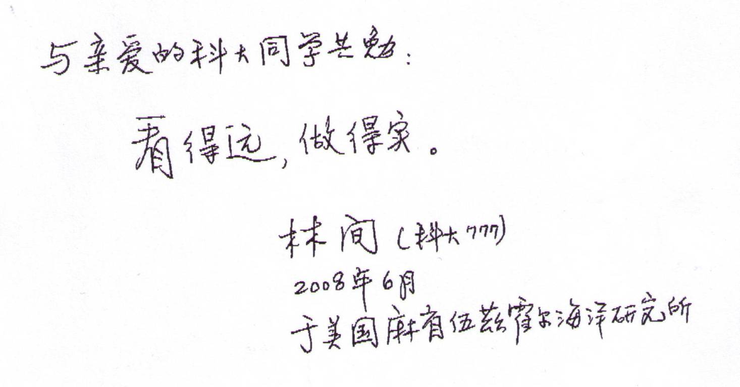 美国伍兹霍尔海洋研究所资深研究员、美国地质学会会士林间(777)对毕业生的期待则是“看得远,做得实”。