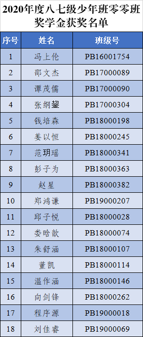 根据奖学金申报要求,经学生申报、奖学金执委会评审,第三届“八七级少年班零零班创新奖学金”评审已完成,共支出94,000.00元用于支持18名少年班学子。