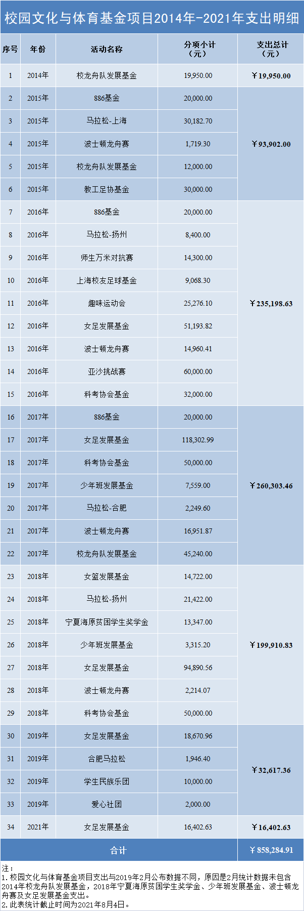 新创基金会长期通过“文体基金”资助科大学生(含社团),截至2021年8月,已拨付85万余元,用于支持科大-复旦女篮友谊赛、扬州马拉松、中国女足、科考协会考察活动,学生民族乐团等。我们期待您能捐赠母校,资助科大学生开展文体活动。如有需要,欢迎科大学生(含社团)申请文体基金”。