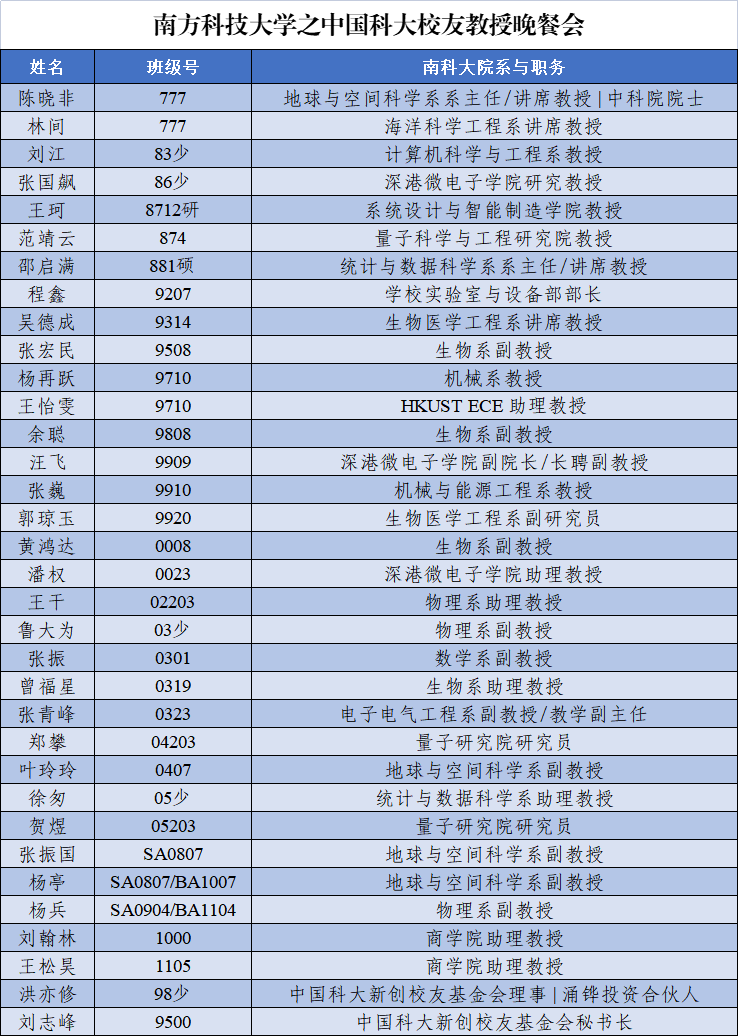 陈晓非院士(777、地球空间科学系系主任)、林间(777,海洋科学工程系讲席教授、AGU会士)等来自各院系的南方科大教授校友们参加了聚会。