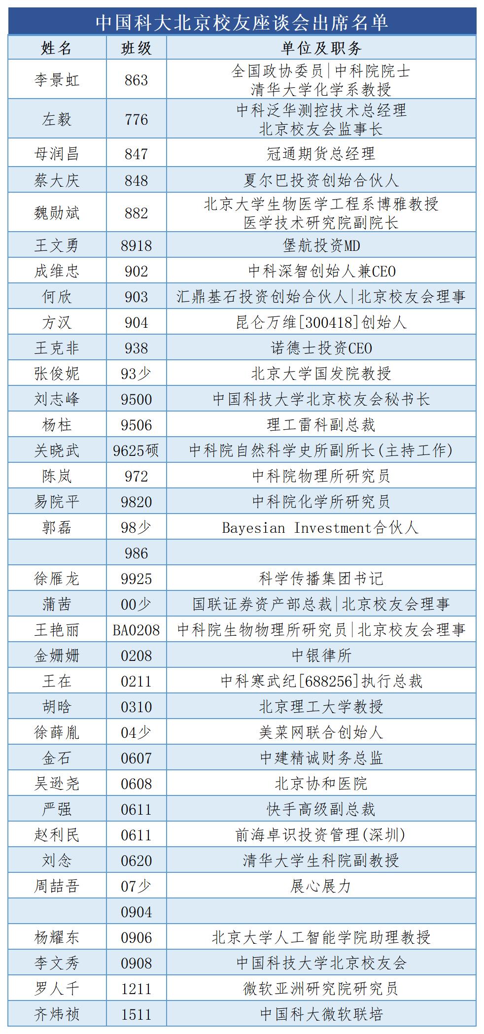 3月26日(星期天),2023年中国科大北京校友座谈会在五道口进行。北京校友会、新创校友基金会理事与校友代表座谈,约40人出席,横跨77-15级校友。全国政协委员、中国科学院院士、清华大学化学系李景虹教授(863)出席。这是继3月22日(星期三)之后,新创基金会再次进行线下活动。