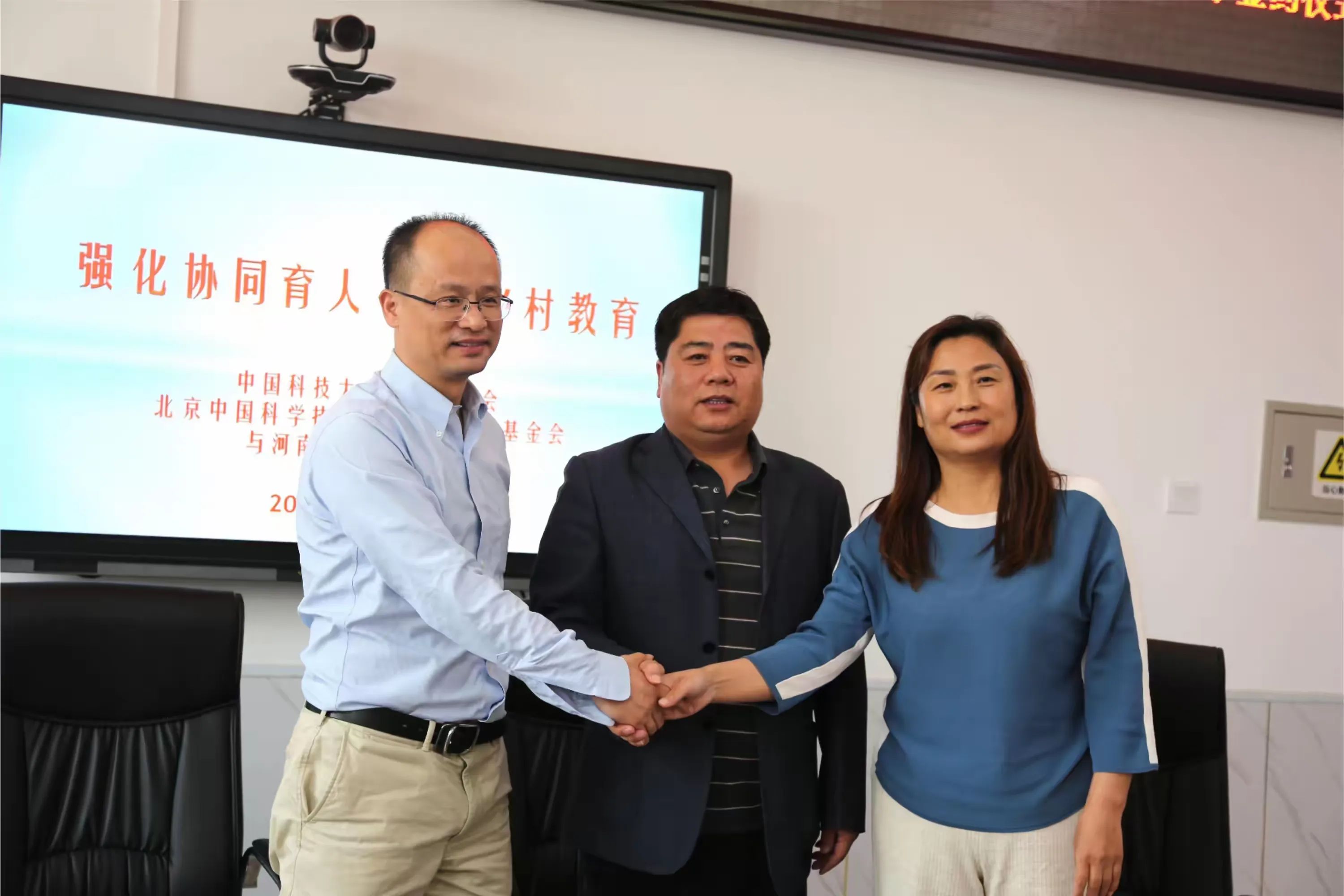 签约仪式由河南寨中学副校长郭延栋主持,中国科技大学北京校友会和新创基金会秘书长刘志峰,成员李文秀, 磨铁文化品牌总监闫硕、中国科技大学北京校友会理事及象帝先计算技术(重庆)副总裁丁智勇、中国科技大学北京校友会理事及攸乐科技联合创始人欧阳刘彬、河南寨镇党委副书记程万里 、河南寨政府副镇长张印民、河南寨中学校长张明静、教务处副主任刘兴华、团委书记王一婷出席本次签约会。