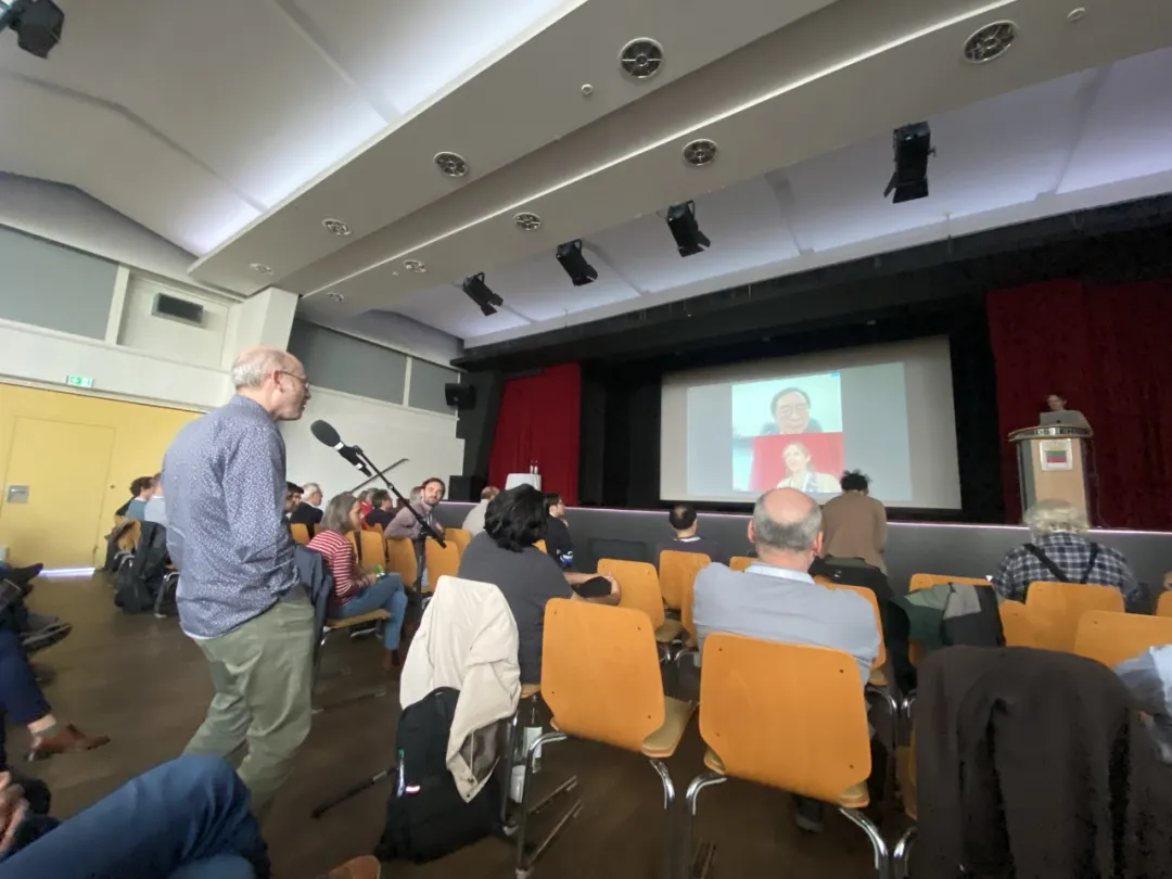 首先提问的是Helgoland 2025研讨会的发起人和共同组织者、耶鲁大学教授Jack Harris。他回忆起潘建伟在过往一次报告中提到,团队曾设想在“地球与月球之间”进行量子纠缠分发,以验证贝尔不等式,并有意引入“人类意识参与测量设定”的设想。
