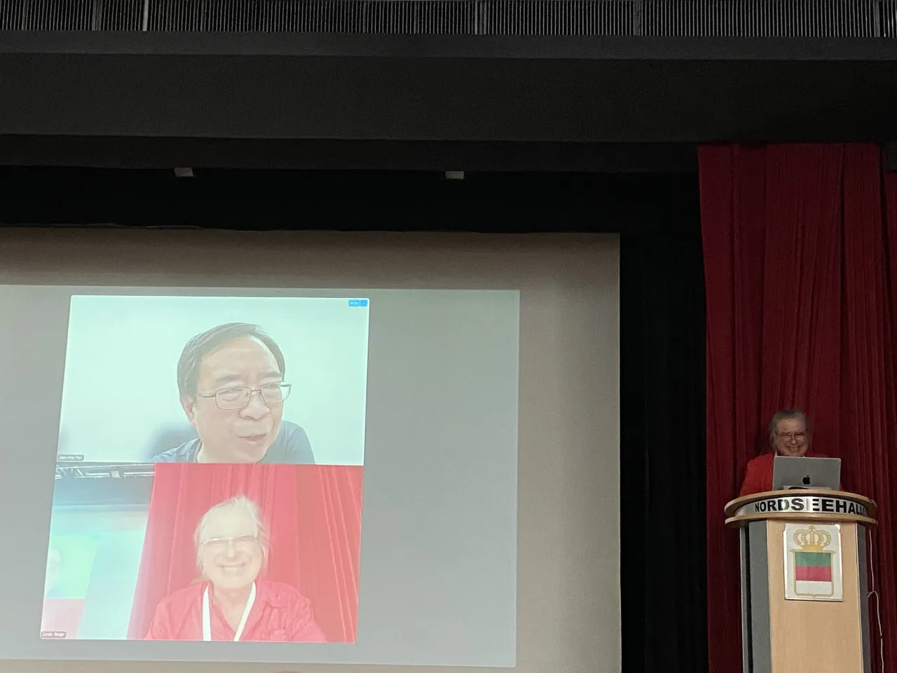 随后,加拿大蒙特利尔大学教授、量子密码学奠基人Gilles Brassard走到讲台前,微笑着向屏幕另一端的潘建伟问候:“你好,建伟,很高兴见到你。”