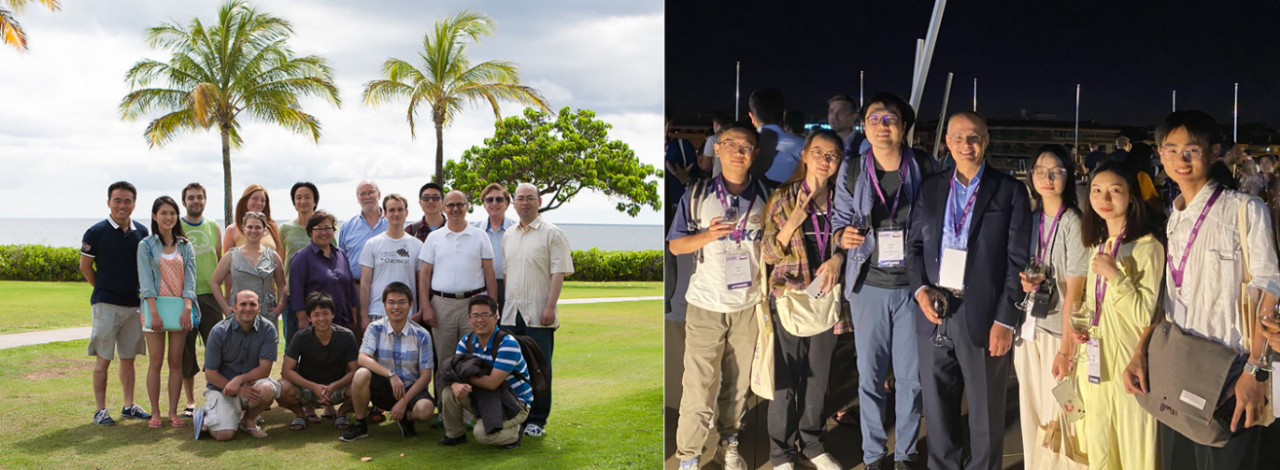 左图:2013年Yaghi组在夏威夷合影;右图:2023年笔者课题组部分成员与Yaghi教授合影