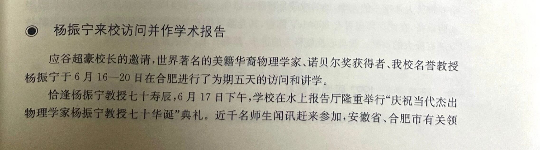 · 1992年6月17日下午,中国科大举办活动庆祝杨振宁70岁生日。