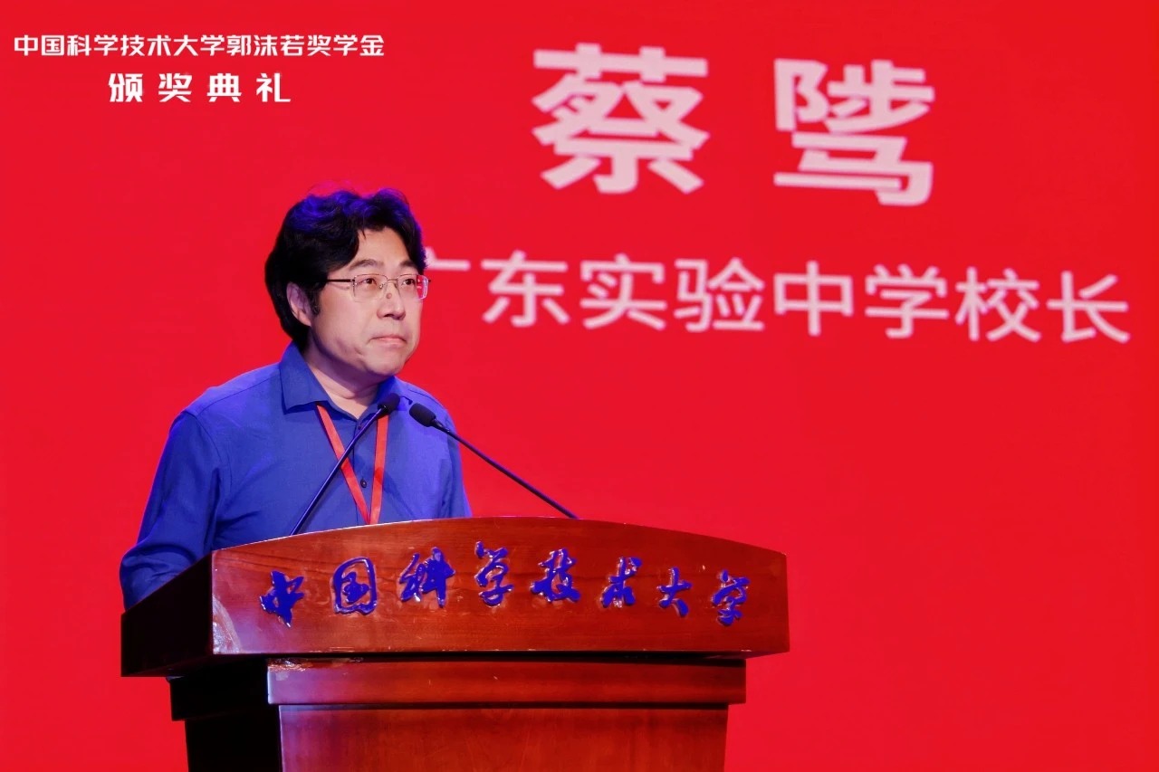 广东实验中学校长蔡骘表示,中学与大学在为党育人、为国育才的目标上一脉相承,中学的“育苗”与大学的“滴灌”同频共振。他引用我校首任校长郭沫若的名句:“韬略终须建新国,奋起还得读良书”,鼓励同学们以郭沫若奖学金为新起点,将个人理想融入民族复兴伟业,未来在攻克“卡脖子”技术、引领科技前沿的征程中,挺膺担当,不负韶华,成长为无愧于时代、无愧于国家、无愧于母校的杰出人才。
