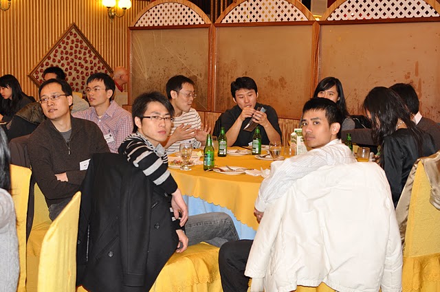 聚会在自助餐中开始,互动频繁,场面热烈。从八几级的学界、业界江湖大佬,到07级的90后阳光小帅哥(转学出来读本科的),校友们无不神采奕奕,满面春风,席间觥筹交错,其乐融融。此次新春聚会采取了先吃饱喝足、再进行嘉宾演讲环节的方针。事实证明效果非常好,演讲嘉宾中气十足,台下聆听者聚精会神。出席本次聚会的校友称赞“这次饭吃得不错,大家觉得菜比历次要好。不过羊排太少,我抢到2块,我老婆只抢到一块。” 中国科大纽约校友会宣布了换届——吕品超(9411)将出任大纽约校友会主席,主持2010年工作,“老领导”陈晓刚(912)向校友们隆重推出了吕品超。