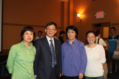 侯建国与中国科大校友合影。左一为密西根大学造船学与海洋工程系教授、美国电子电气工程师学会会士(IEEE Fellow)孙静博士(776),左三为密西根大学物理系教授、美国物理学会会士(APS Fellow)周冰博士。中国科大毕业生中有几十位APS、IEEE Fellow,她们正巧是目前仅有的两位女会士。